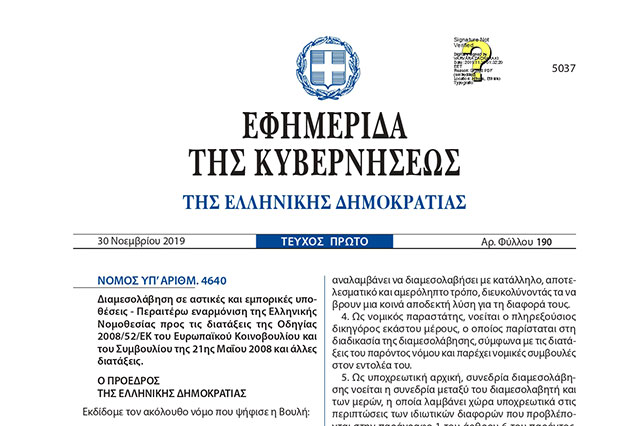 Ο ΝΕΟΣ ΝΟΜΟΣ ΓΙΑ ΤΗ ΔΙΑΜΕΣΟΛΑΒΗΣΗ (Ν4640/2019)