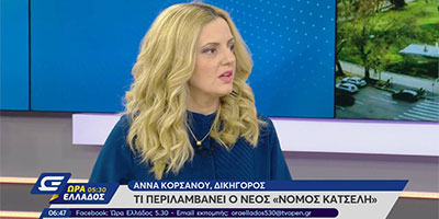 Η Άννα Κορσάνου στην εκπομπή “ΩΡΑ ΕΛΛΑΔΟΣ 5.30” στο OPEN BEYOND TV μιλά για τον Νέο Νόμο “Κατσέλη” 11 Φεβρουαρίου 2019 Δείτε το video