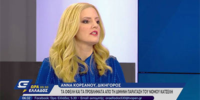 Η Άννα Κορσάνου στην εκπομπή “ΩΡΑ ΕΛΛΑΔΟΣ 5.30” στο OPEN BEYOND TV μιλά για τη Διάδοχη Κατάσταση του Νόμου “Κατσέλη” 31 Ιανουαρίου 2019 Δείτε το video