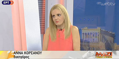 Η Άννα Κορσάνου στην εκπομπή “Μαζί το Σαββατοκύριακο” της ΕΡΤ1 μιλά για την Ευθύνη Εγγυητών και Συνοφειλετών 29 Σεπτεμβρίου 2018 Δείτε το video