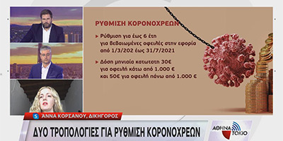 Η Άννα Κορσάνου στην εκπομπή της ΕΡΤ1 “Αθήνα Τόκιο” απαντά σε Ερωτήσεις για τη Ρύθμιση Κορονοχρεών 29 Ιουλίου 2021 Δείτε το video