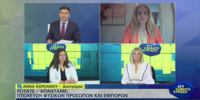 Η Άννα Κορσάνου στην εκπομπή της ΕΡΤ1 “Από τις 6” απαντά σε ερωτήσεις για τον Πτωχευτικό Νόμο 16 Σεπτεμβρίου 2021 Δείτε το video