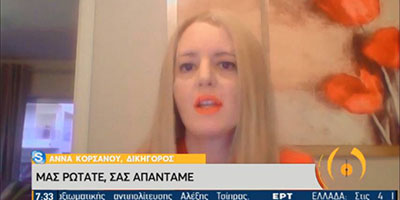 Η Άννα Κορσάνου στην εκπομπή «ΕΡΤ ΣΑΒΒΑΤΟΚΥΡΙΑΚΟ» της ΕΡΤ1 μιλά για τις Αλλαγές στον Νόμο Κατσέλη 26 Σεπτεμβρίου 2020 Δείτε το video