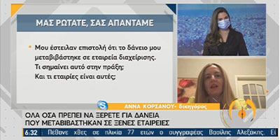 Η Άννα Κορσάνου στην εκπομπή «Από τις έξι…» της ΕΡΤ1 δίνει Απαντήσεις στις Ερωτήσεις σας για τα Δάνεια 5 Οκτωβρίου 2020 Δείτε το video