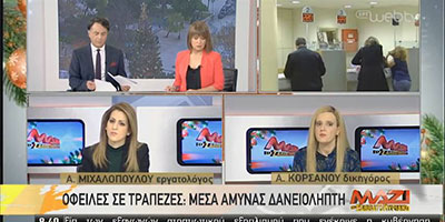 Η Άννα Κορσάνου στην εκπομπή «Μαζί το Σαββατοκύριακο» της ΕΡΤ1 μιλά για τα Μέσα Άμυνας του Δανειολήπτη 28 Δεκεμβρίου 2019 Δείτε το video